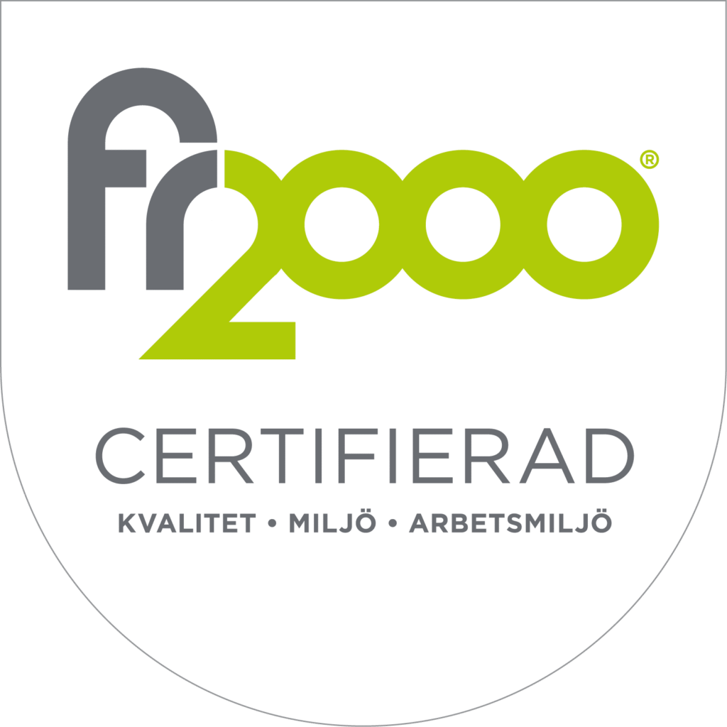 För att kvalitets säkra det vi gör så jobbar vi med säker vatten och är certifierade inom FR2000.